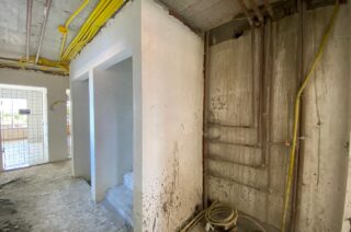 2 quartos (1 suíte), wc social, sala de estar, jantar, cozinha/serviço, varanda e laje técnica (ar condicionados).